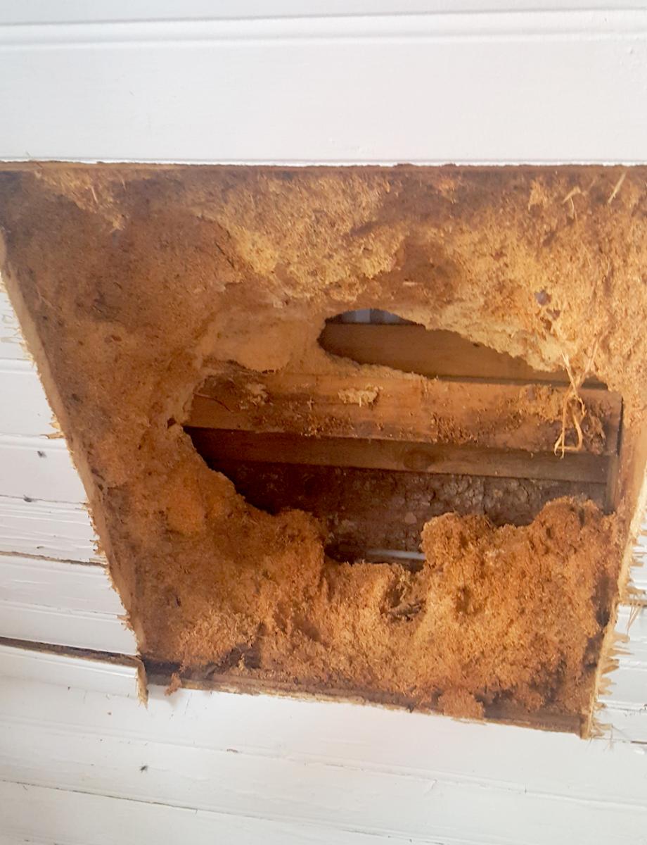 Tein aukon yläkerran sisäkattoon kun laudoissa kosteuden jälkiä.